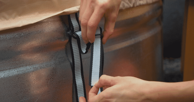They are lightweight and made of high-quality waterproof material with optional straps that can be attached to help keep the cover securely in place. The side and bottom straps are not necessary for use of your pool cover. If you do choose to use the strap kit, you must place your bottom straps beneath your pool before filling. Otherwise you can drain your pool to put straps underneath or use looped ground stakes around your tank instead.