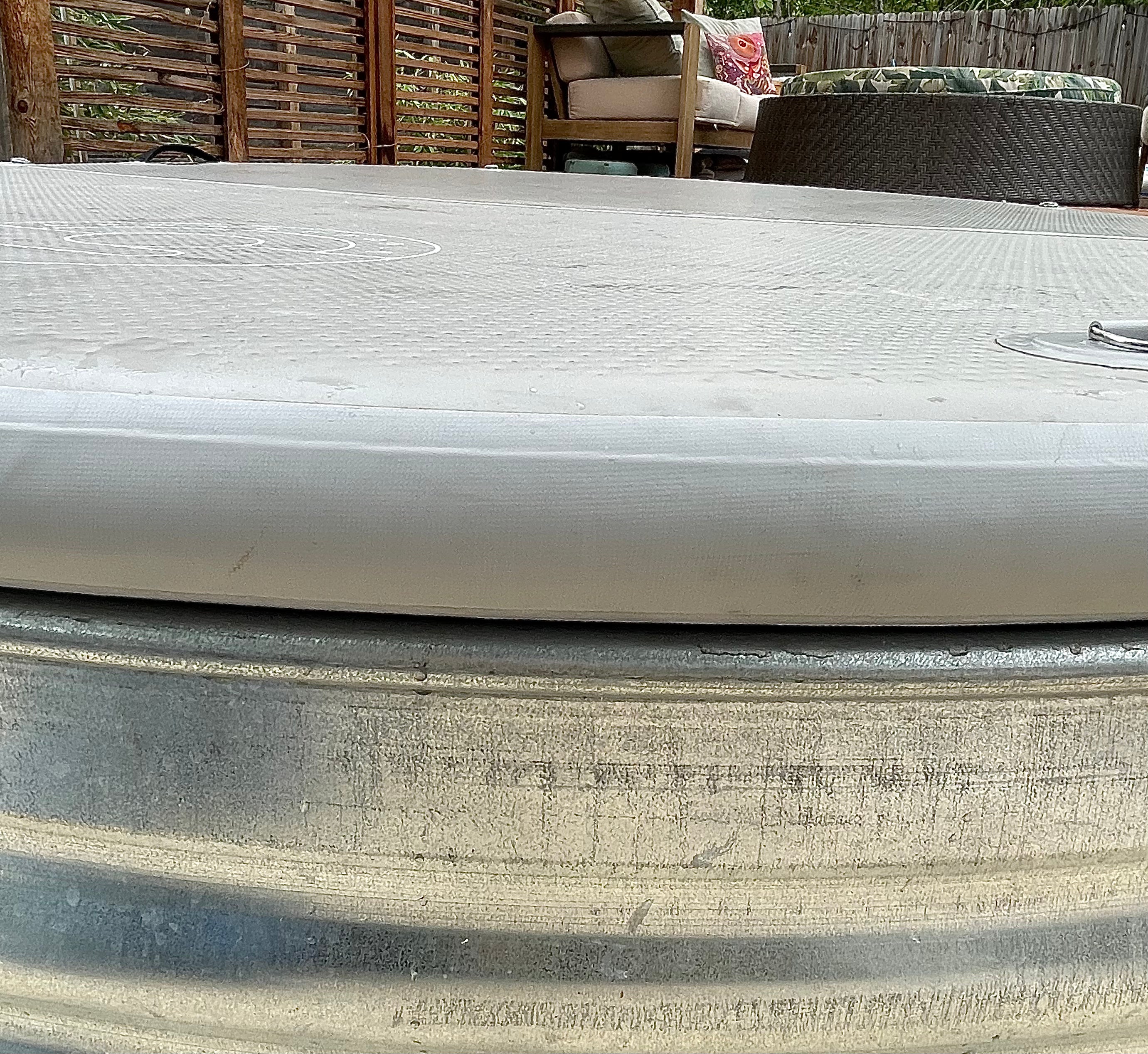 An effective hard cover without the hassle! Our patented hard cover fits our OG Cowboy Pools & Honcho styles (with or without liner). Keeps out leaves, debris and rain-- without pooling! Our new slightly tented design requires little to no maintenance, even after storms. Made from drop-stitch PVC, it is light enough to be placed and removed by one person, but heavy enough to stay put in the elements.